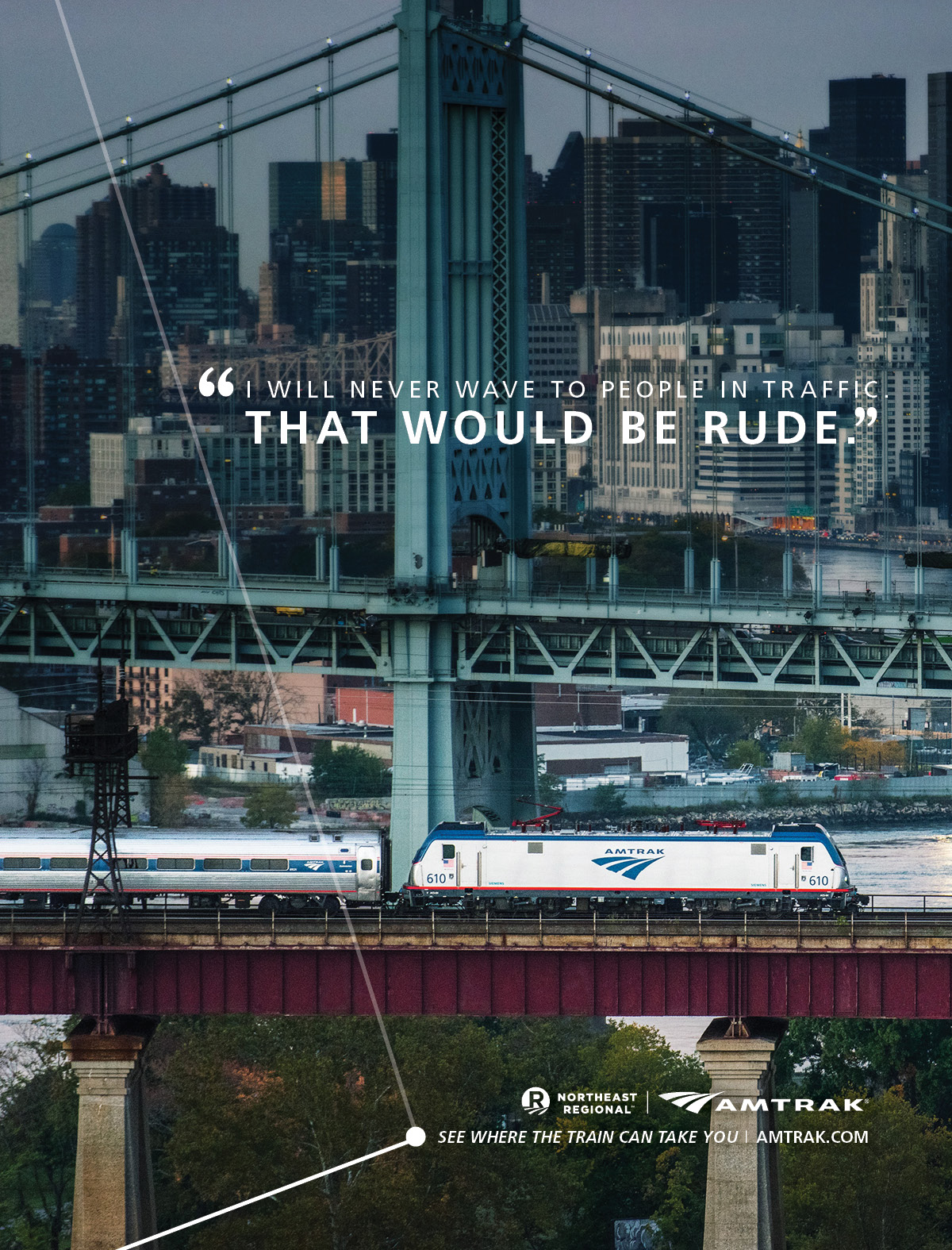 This is the first branding campaign Amtrak has done in 15 years. It plays off of the uniqueness of train travel, the 500 destinations Amtrak serves and the infinite stories told by the passengers. All communications feature the new tagline, “See where the train can take you.”